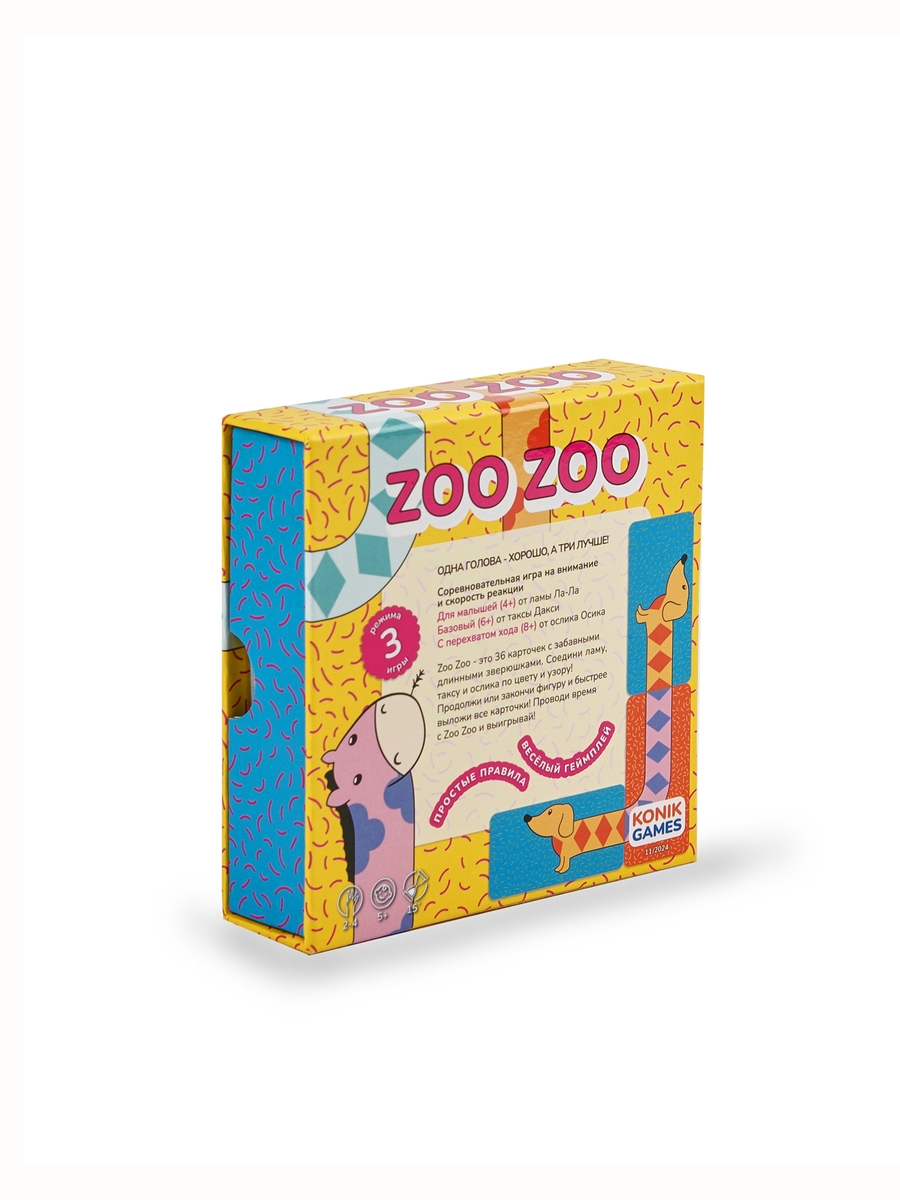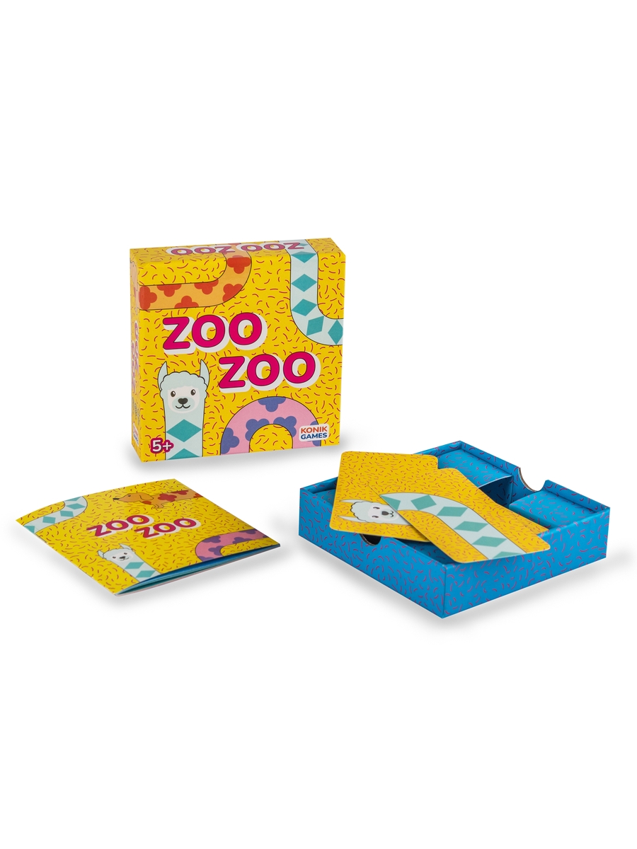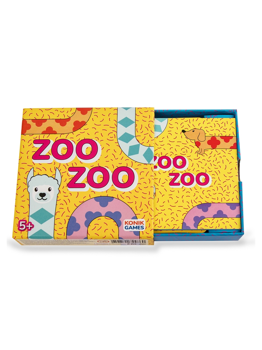 ZOO ZOO – весёлая быстрая игра про трёх неразлучных друзей - ламу, таксу и ослика. Это длинные зверушки причудливой формы, которые живут в длинном городе. Выложи в свой ход нужную карточку зверушки, и продолжай цепочку подходящих карточек до тех пор, пока не выложишь все. Тренируй внимание и реакцию и выигрывай!
