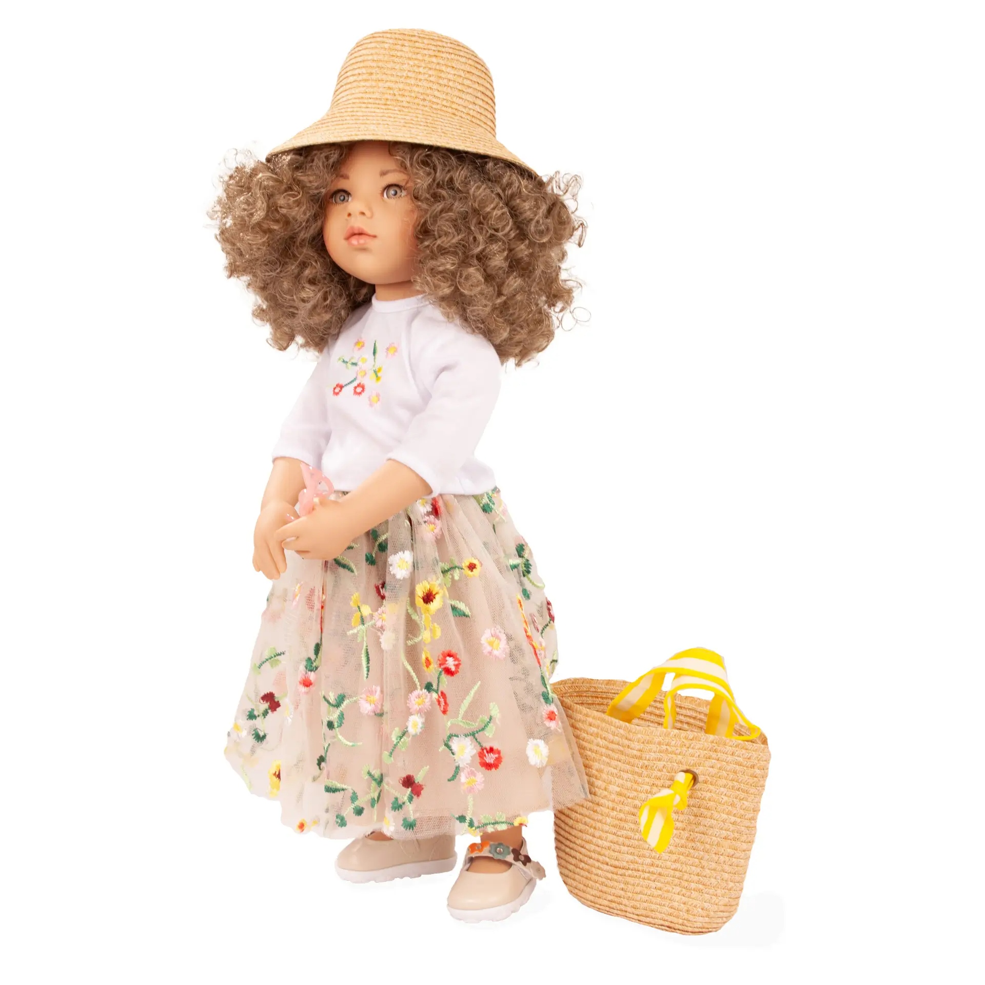 Очаровательная кукла Мара готова покорить мир моды! В ее гардеробе вы найдете стильные туфельки Mary Jane, украшенные цветами, элегантную плетеную сумочку, кокетливую соломенную шляпку и солнцезащитные очки для яркого образа.