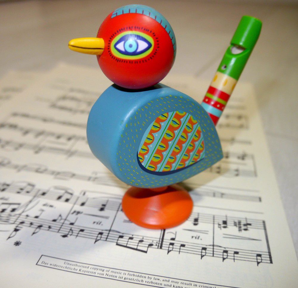 Красивый свисток в форме птицы с прекрасными иллюстрациями. Идеальный подарок для приобщения малышей в возрасте от 3 лет к музицированию.
